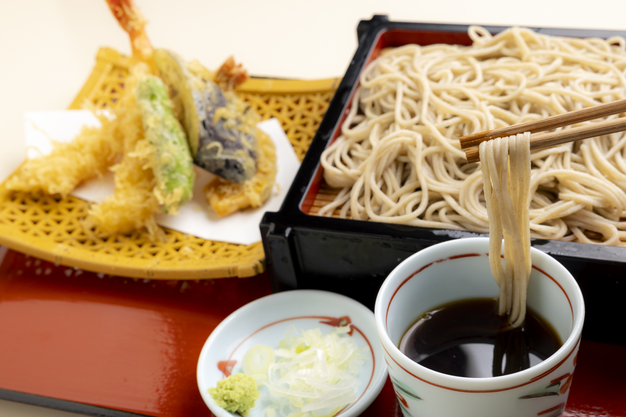 人気の「海老天せいろ」は海老が2尾に季節の野菜が添えられます。冬季限定の「つけけんちん」は11月~3月末まで提供。地元の鮎やメヒカリ、茨城県産の食材を積極的にメニューに組み込んだ蕎麦前も自慢です。地酒も豊富に取り揃えており、地酒の飲み比べセットもあるので、蕎麦前と地酒を楽しむ蕎麦通にも満足してもらえるお店です。