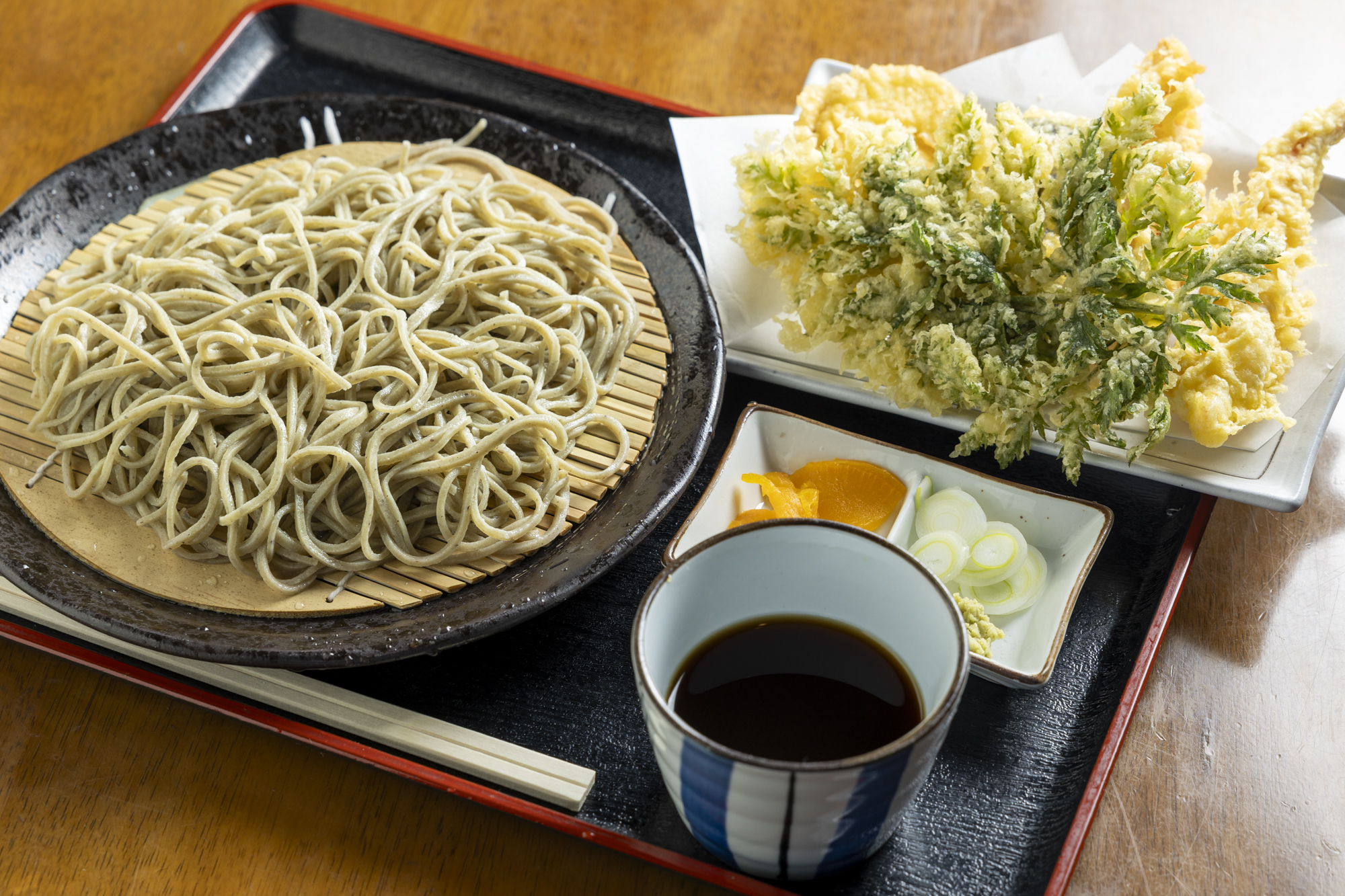 もちろん、のど越しの良い二八蕎麦も用意。かねさんのこだわりを挙げていけば枚挙に暇がありません。カツオと昆布の辛汁と自家製野菜の天ぷらで食べるもよし、冬なら地野菜たっぷりの鯖節が効いたけんちんで食べるもよし!この美味しさ、ぜひひと口体感してください。