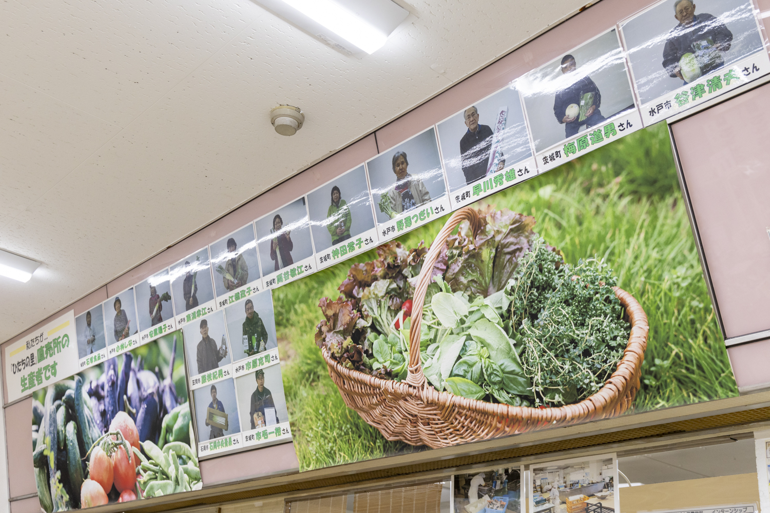 水戸の近郊農家を中心に、北は大子町・常陸大宮市、南は行方市・鉾田市までと幅広い品目の生産者約300名が登録しており、季節や時期ごとに自慢の農産物が並んでいます。首都圏の台所とも言われる茨城県の豊富な食の魅力がぎゅっと凝縮した売り場です。また、農家さんとも密にやりとりし、品物は毎日搬入しているので新鮮さにも自信あり。「都内のスーパーよりも新鮮で価格も安い」と毎週のように立ち寄られる方もいらっしゃいます。