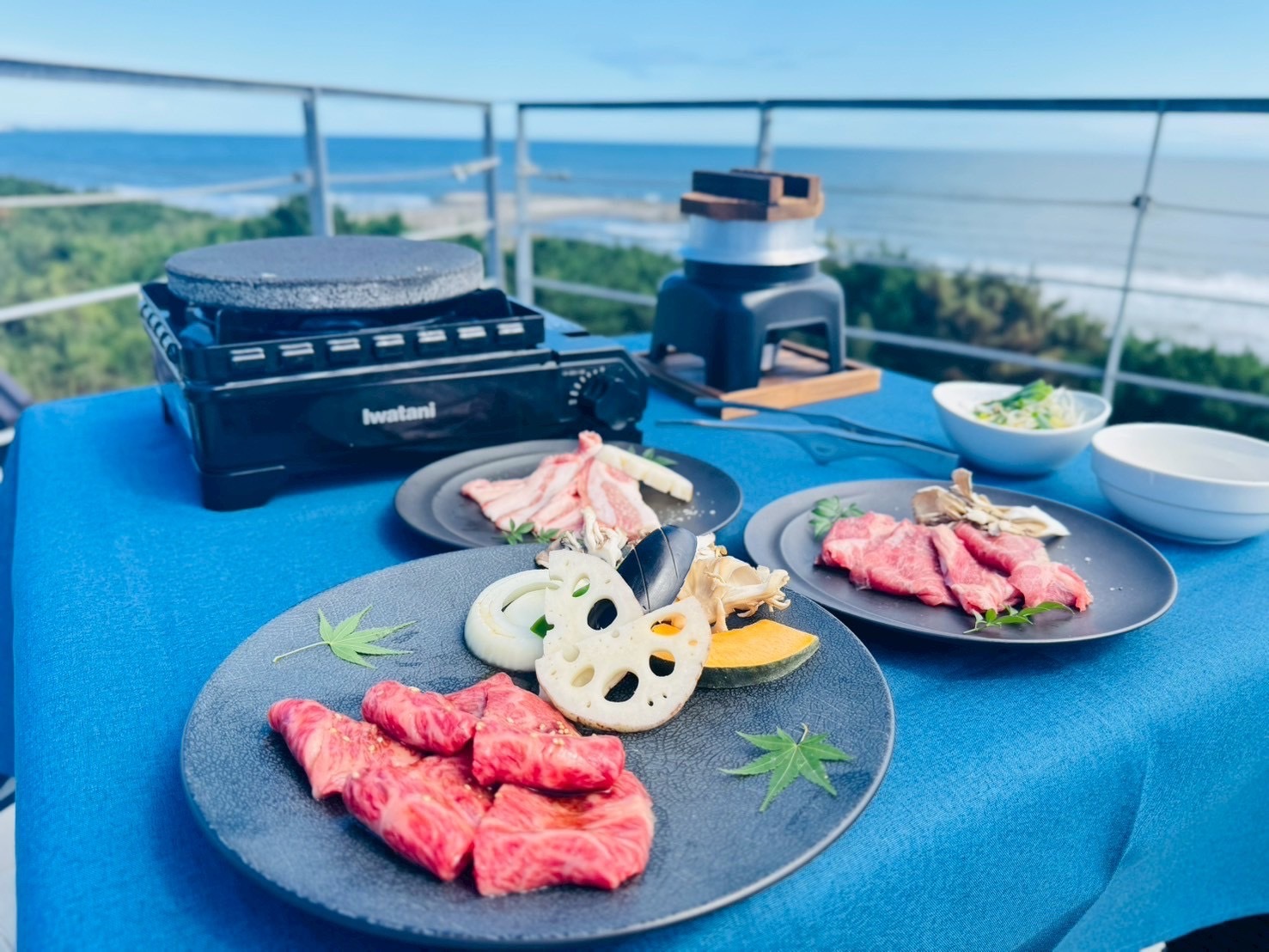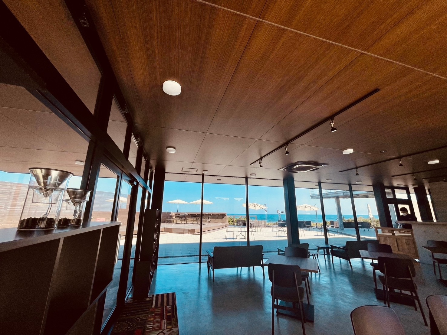鉾田の美しい海岸沿いに立つ建屋は「自然」と「時間」を静かに感じる大人の空間というコンセプトをそのまま体現した作り。さざ波の音が心地よいBGMと思えるほど緩やかな時が流れます。