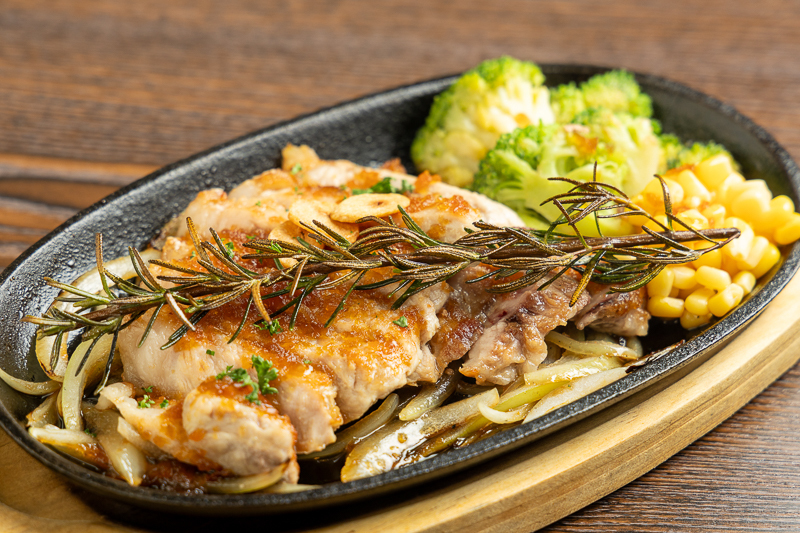 野菜や肉など、地場産の素材を可能な限り取り入れており、中でもぜひ味わっていただきたいのが茨城県産銘柄豚「常陸の輝き」を使用した鉄板ポークソテーです。「メイン料理に使用する豚肉を探す中で出会って試食してみたら、脂身がとても美味くて驚いた」と店長も惚れ込んだ常陸の輝き。あえて肉の中の脂の入りが控え目のものをリクエストして仕入れており、常陸の輝き特有の甘みや柔らかさと脂のバランスが取れたソテーに仕上げています。すりおろし野菜と果物のさっぱりした自家製ジャポネソースはジューシーな肉との相性抜群です。
