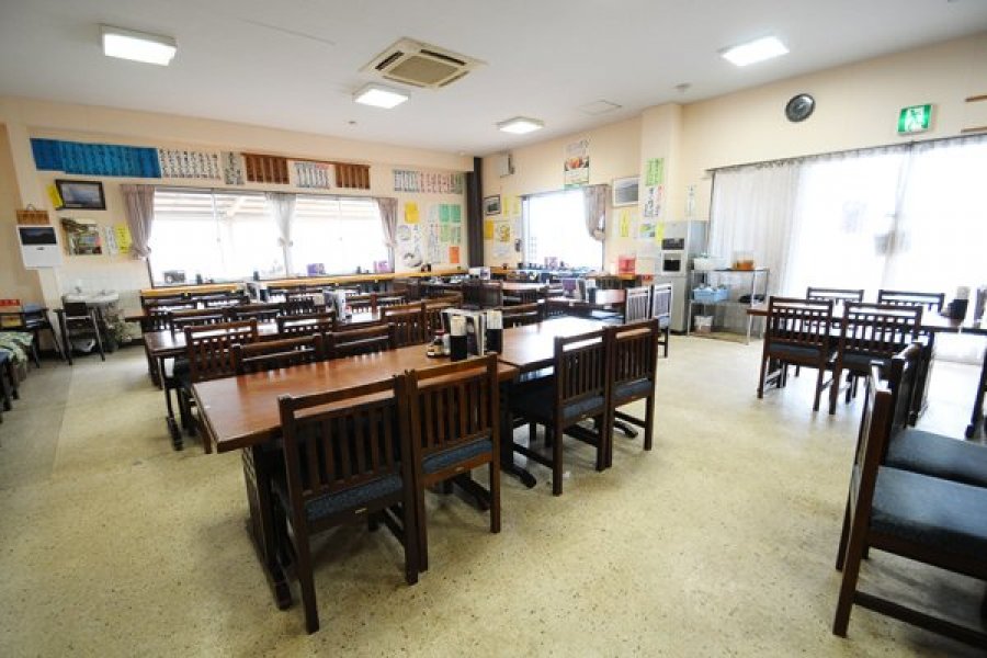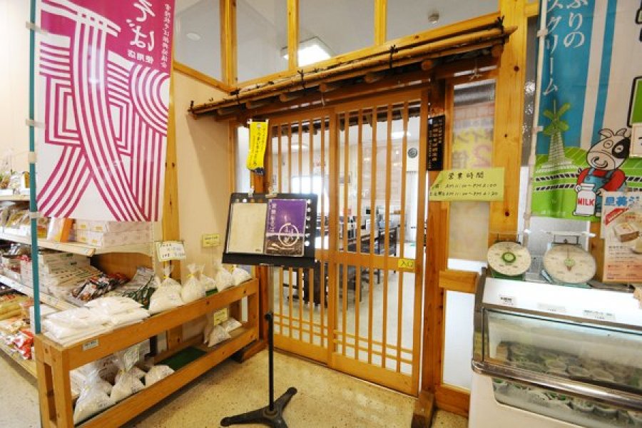 厨房も接客もすべて女性が切り盛りする、地元の主婦の気配りたっぷりの温ったかな雰囲気の食堂です。ガラス越しにそばを石臼で挽く様子も見学できます。