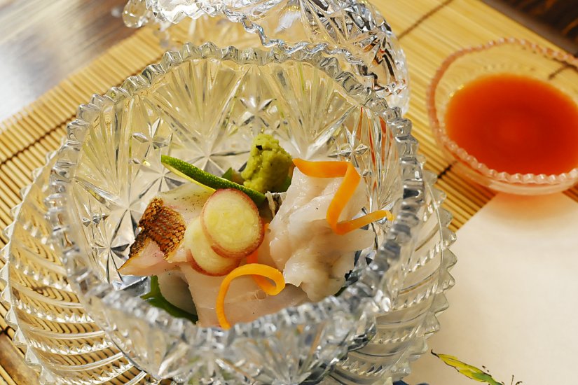 「游々禮楽 竹水亭」では、地産地消と各地より選りすぐった厳選かつ安全で上質な素材はもちろん、橙から作る自家製のポン酢をはじめとして自家製味噌、自家製のジュースなど、冷凍・加工品を使用しない日本料理を提供しております。