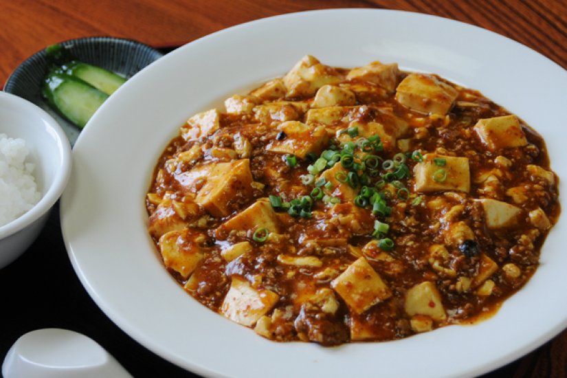 銘柄豚肉ローズポークの挽肉をたっぷりと使用し、多種類のスパイスで仕上げた本格麻婆豆腐が中華麺の上にたっぷりとかかっている人気メニュー。