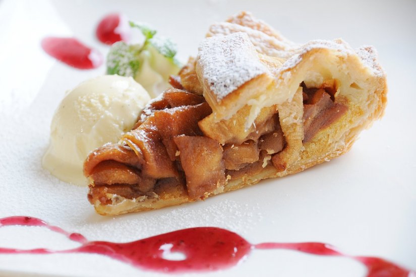 毎日りんごの品種を変えています。ほかにも「はちみつプリン」などこだわりのスイーツがあります。