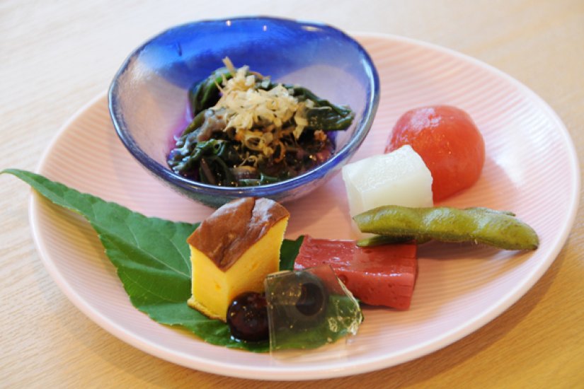 ランチは、地元那珂湊市場で仕入れた新鮮な「海鮮重」、「常陸牛ローストビーフ丼」、「美明豚ステーキ定食」が3大人気メニュー。なかでも「常陸牛ローストビーフ丼」は、常陸牛の肩三角という部位を使い、ジューシーに仕上げたローストビーフに、しょうゆベースのさっぱりとしたタレがかかり、ご飯がどんどん進みます。丼の中には、野菜サラダが多めに入っているのも嬉しいところ。ランチメニューには、かわいい前菜がおよそ6種類、そして食後にはデザートも付きます。夜は、一品料理に加えてコース料理も提供しています。