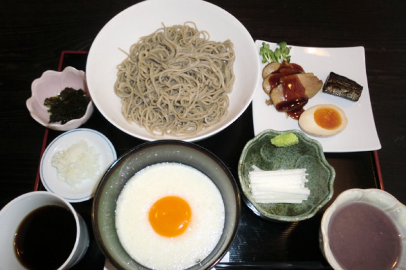 地元那珂市産の野菜をふんだんに使用した、醤油ベースのけんちんに、自慢のそばをつけていただきます。