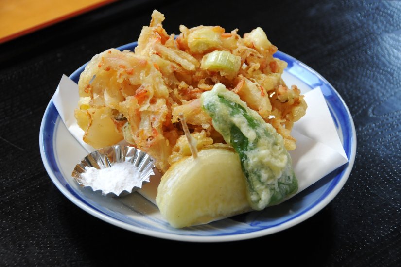 甘味がある小エビと野菜がたくさん入ったかき揚げ。