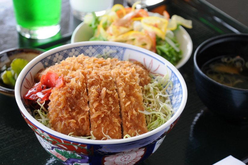 ローズポークをミルフィーユ仕立てに重ねてソースかつ丼にしました。単品ならなんとワンコイン(500円)!