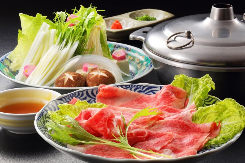 茨城の誇る銘柄牛「常陸牛」のしゃぶしゃぶです。地元の新鮮野菜とご一緒にどうぞ。