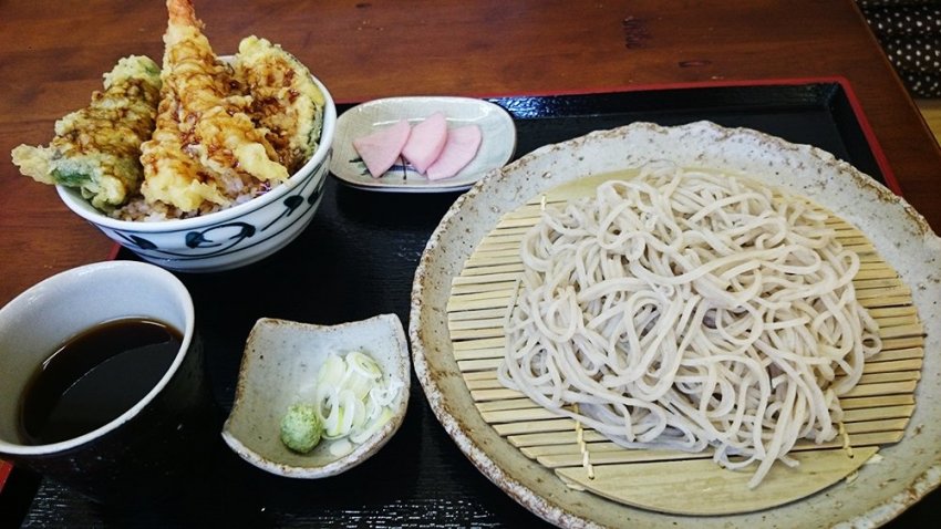 お得なミニえび天丼と桜川そばのランチセットです。