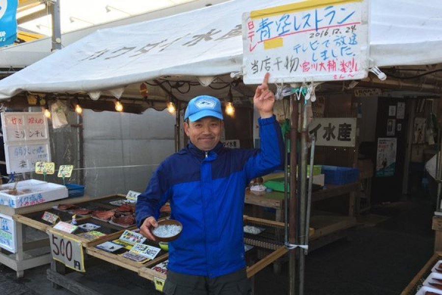 | 主な取扱商品 | ●加工品:サバミリン干、さんまミリン干、あじ開き干、ホッケ開干、沖獲り汐鮭 ○地物:那珂川の鮭(塩引き)、平目の一夜干、鮟鱇丸干、かわはぎミリン干 ◎鮮魚:地魚(ひらめ、マコ鰈、ホウボウ、鯛、涸沼のしじみ等)時季物、かつお、さんま、那珂川の鮭等 |