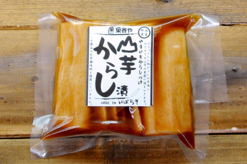 一番の人気商品は、山芋のからし漬けです。ほんのり甘いこだわり醤油と和カラシを効かせた山芋の漬物で、お酒のおつまみやご飯のおかずにピッタリの商品です。