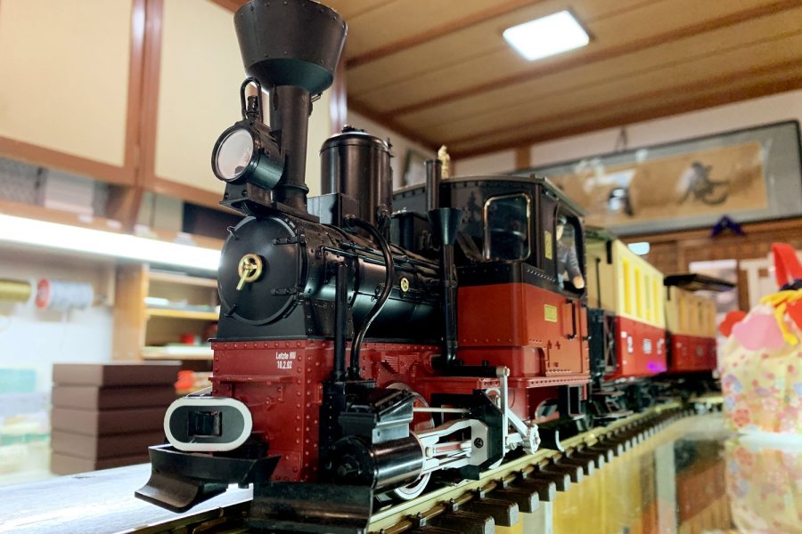 古民家風の店内では、おつりを乗せてSLが走っています。