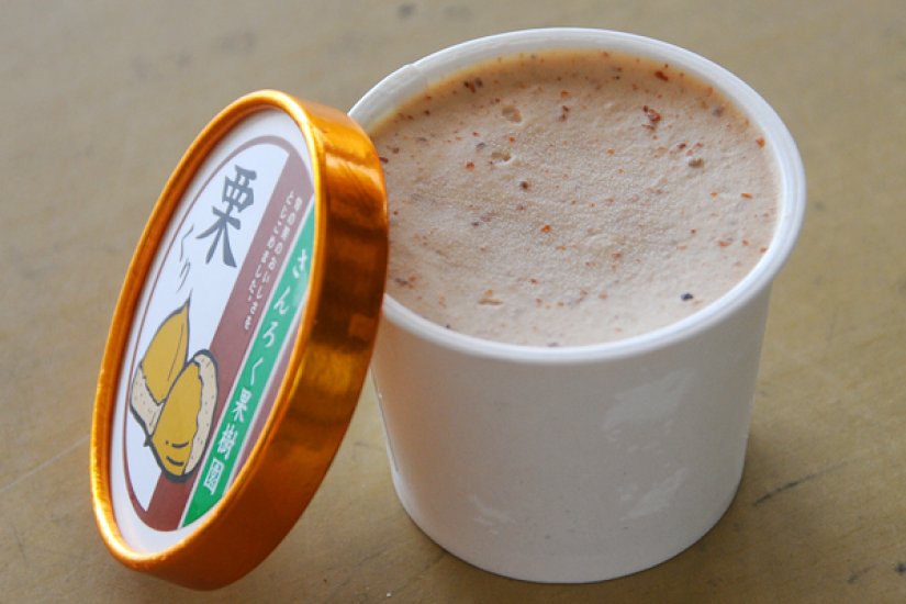 シーズン以外にも、さんろく果樹園のおいしい果物を楽しんでいただけるよう、当園の梨をきざんでいれた「梨アイス」、当園の栗の渋皮煮のペーストを練りこんだ「栗アイス」を販売しています。
