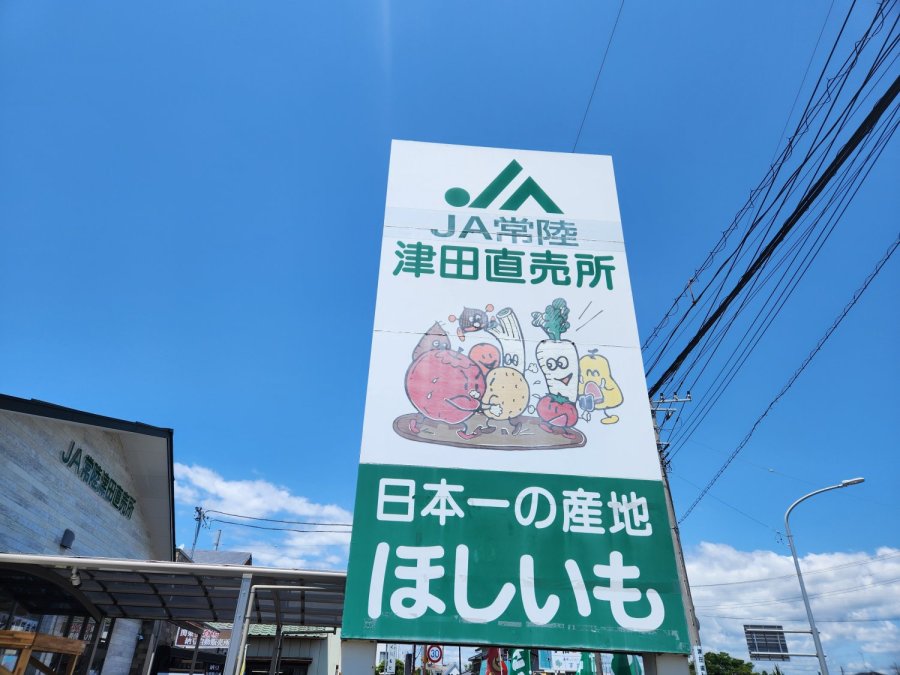 「JA常陸 津田直売所」は、JR常磐線勝田駅から西へ約2キロメートルほどのところ、県道38号線沿いにあります。