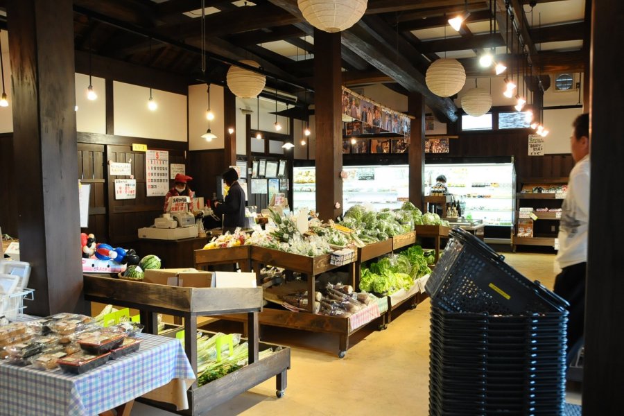 「土からのたより」は古民家風のダイナミックな造りで、一見すると直売所には見えない庭園付きの農産物直売所です。