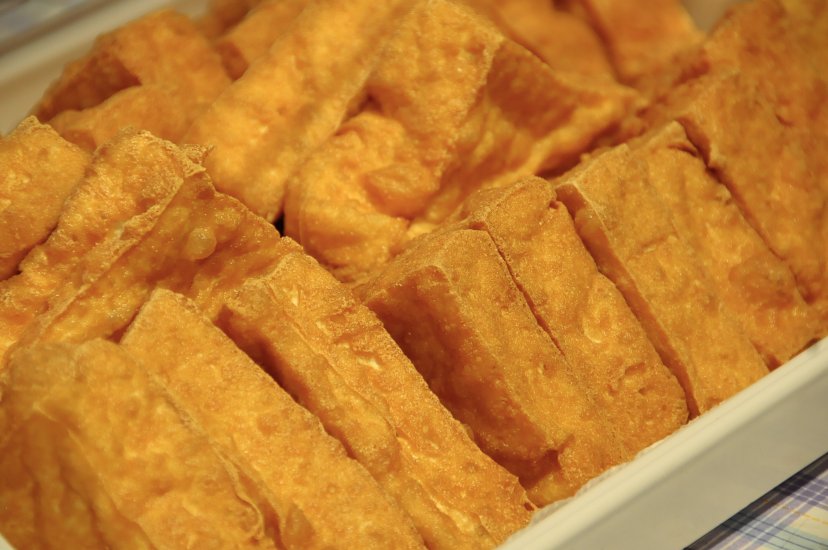 店内には調理場が併設されており、そこで揚げたてアツアツを召しあがれる大人気の「厚揚げ」は、つくば市の豆腐屋さんから毎朝届けられる豆腐を使用。さっぱりとしていて冷めてもおいしいく、衣はサクサク、中の豆腐はトロッとしている大人気商品です。東京からもわざわざこれを求めて来る方も多く、あまりの人気に購入個数に制限が出るほどです。