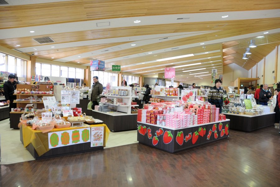 施設内は5つのエリアで構成されており、主に地元古河市で取れた農産物の直売を行う古河マルシェ「まくらが」、お土産コーナー「ゆきはな」、フードコート「みやことほまれ」では主に地元産の農産物を使用した料理が提供されています。お茶屋「さしま」では、地元銘茶「さしま茶」を美味しい和菓子と一緒にいただけ、カフェ・ベーカリー「はなもも」では地元食材を用いて店内の釜で焼き上げた焼き立てのパンが味わえます。「はなもも」で販売されている「古河野菜の玄米サンド」は、自家製玄米ブレッドと旬の古河産新鮮野菜をサンドしたサンドイッチで、TVでも紹介されるなど、大変人気の商品となっています。