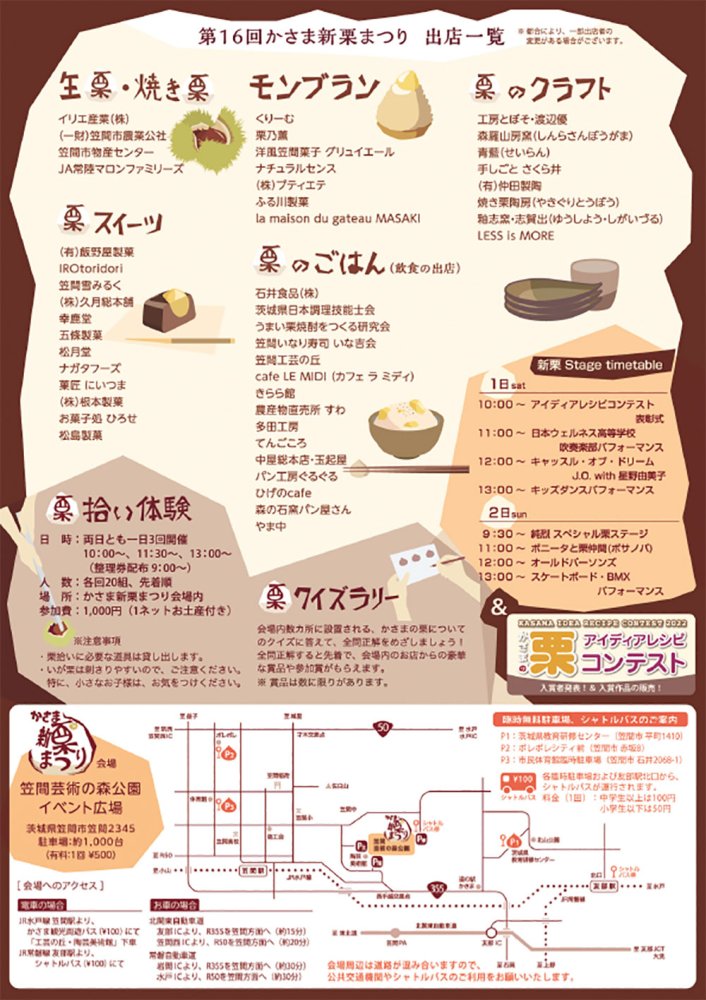 10月には、県内最大級の栗のお祭り「かさま新栗まつり」が笠間芸術の森公園で開催されます!