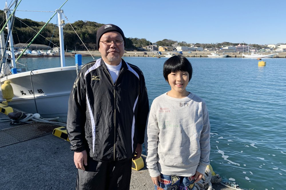 磯崎漁業協同組合 指導課長 根本隆行さんと湊くん。